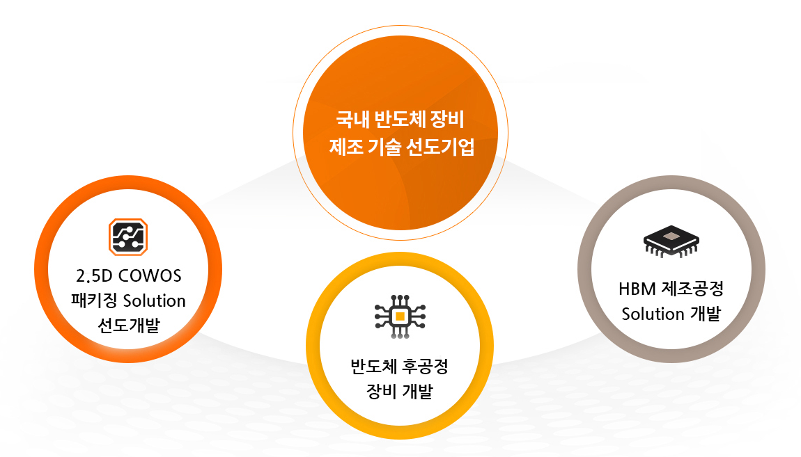 SAW SINGULATION, EMI SHIELD SOLUTION, HBM AUTOMATION, LASER APPLICATION 주력장비로 판매를 하고 있다고 합니다.