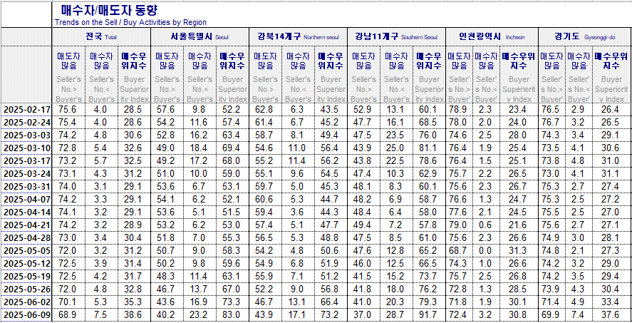 KB주간시계열 25년 7월 4일 / 양천구 과천 마포구 상승 (1) 2025.07.06