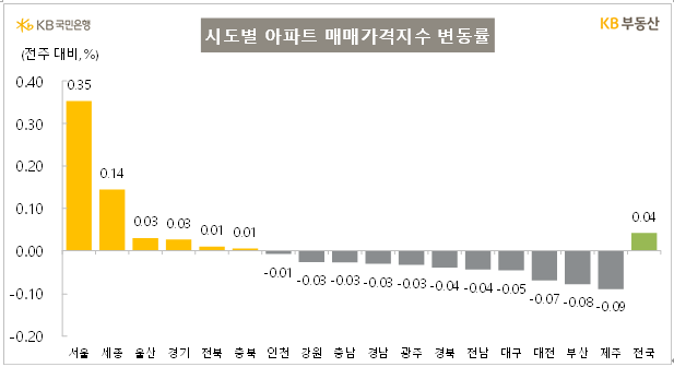 서울의 상승이 상당히 높게나타났습니다. 현재 시장을 주도하는 서울이 높게 나왔네요.