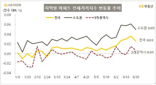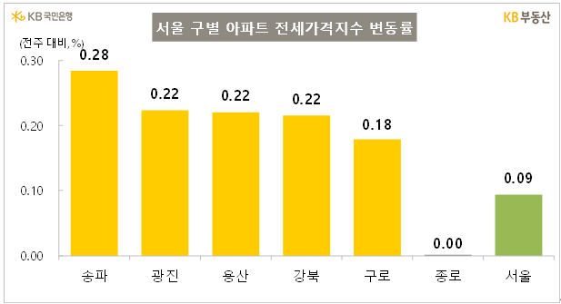 전세는 서울의 상승세가 가장 높게 나타났습니다.