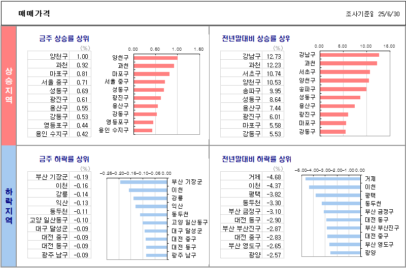 KB주간시계열 차트 25년 6월 13일 / 강남구 과천 양천구 상승 (2) 2025.06.15