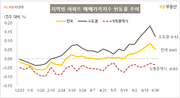 매매가격증감률이 수도권이 0.12%로 다시 하락하였습니다.